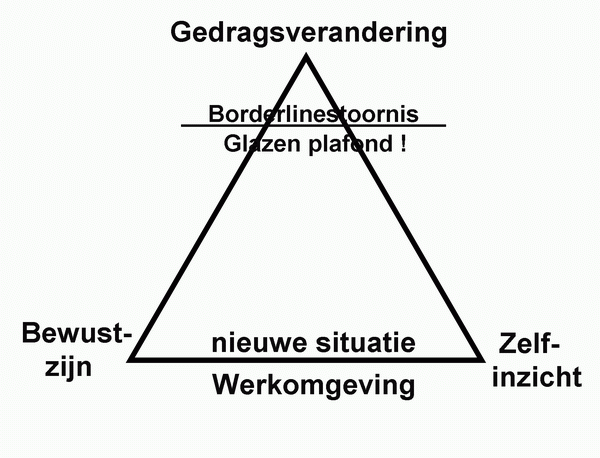 Een collega gaf mij onderstaand eenvoudige gedragsschema dat Ik voor Ida heb ingevuld. hoewel ik het proces al eerder omschreven heb, en de onneembare emotionele horde die de Borderline-diagnose voor haar vormt om haar gedrag aan een nieuwe situatie aan te passen, is de visuele samenballing van haar problematiek, zes jaar na het afscheid nog steeds confronterend voor me.